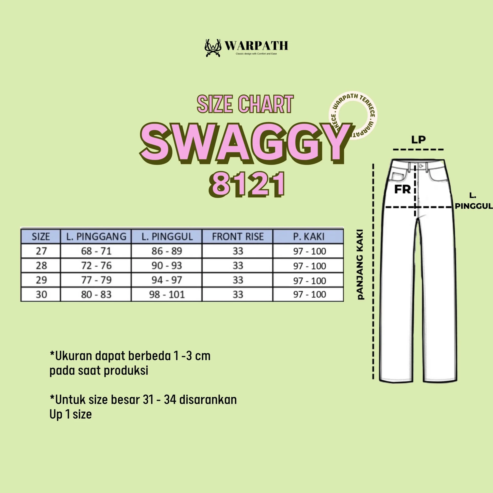 Size chart lengkap tersedia di slide foto terakhir.