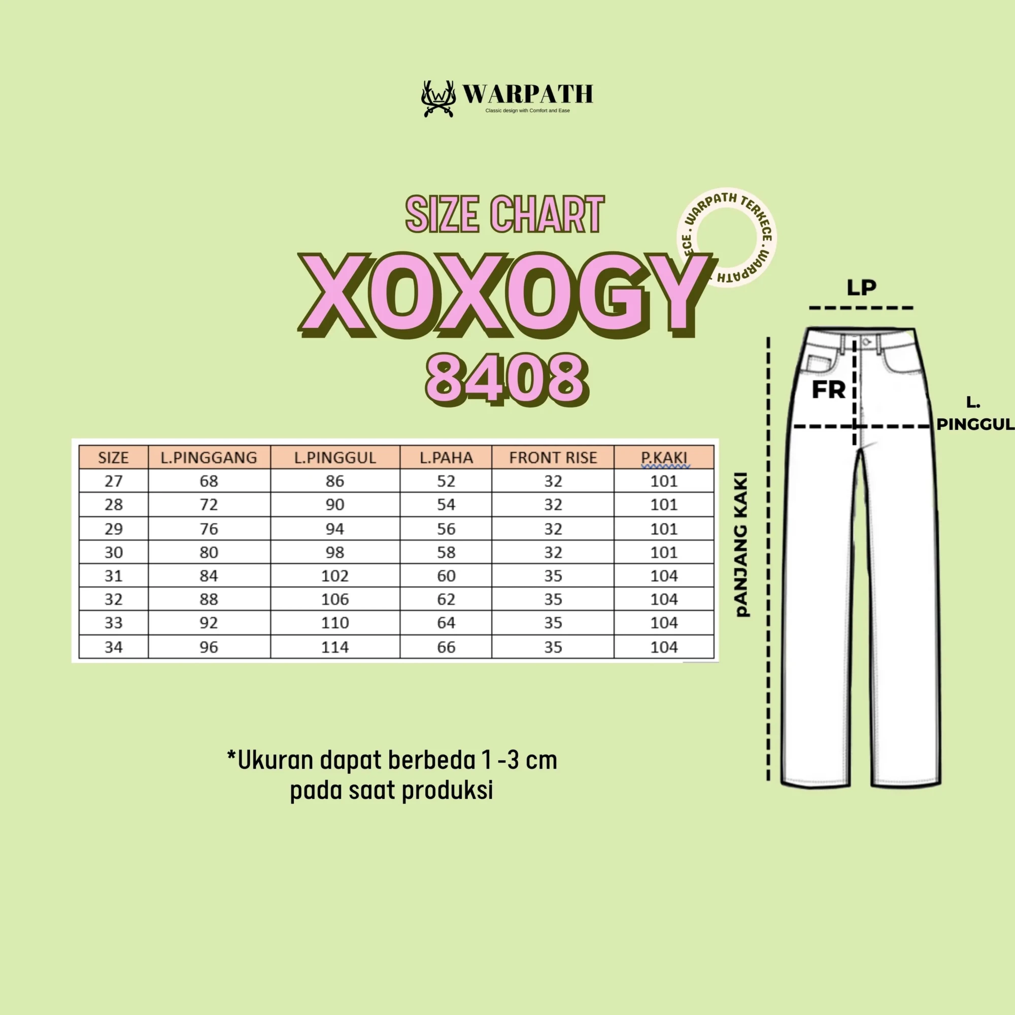 Size chart lengkap tersedia di slide foto terakhir.